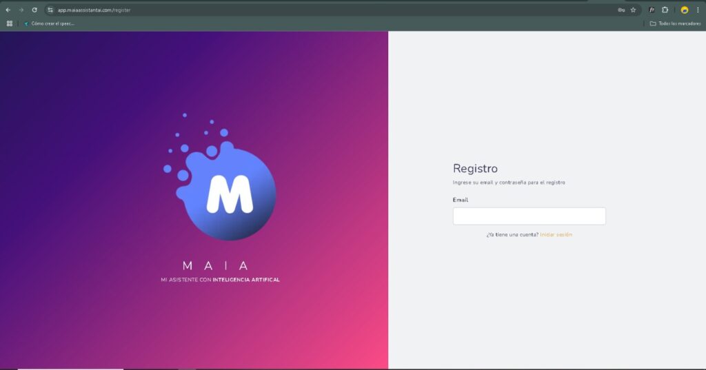 Para registrarse, el usuario debe ingresar a https://app.maiaassistantai.com/register , completar su correo electrónico, crear una contraseña y aceptar los términos y condiciones.