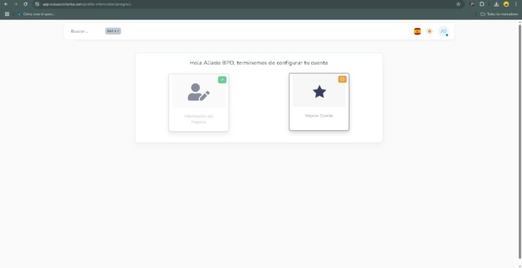 Una vez registrado, el sistema le guiará en una configuración inicial con los siguientes pasos: