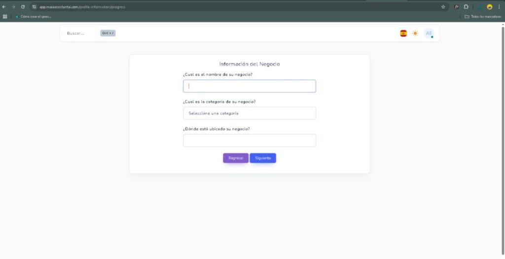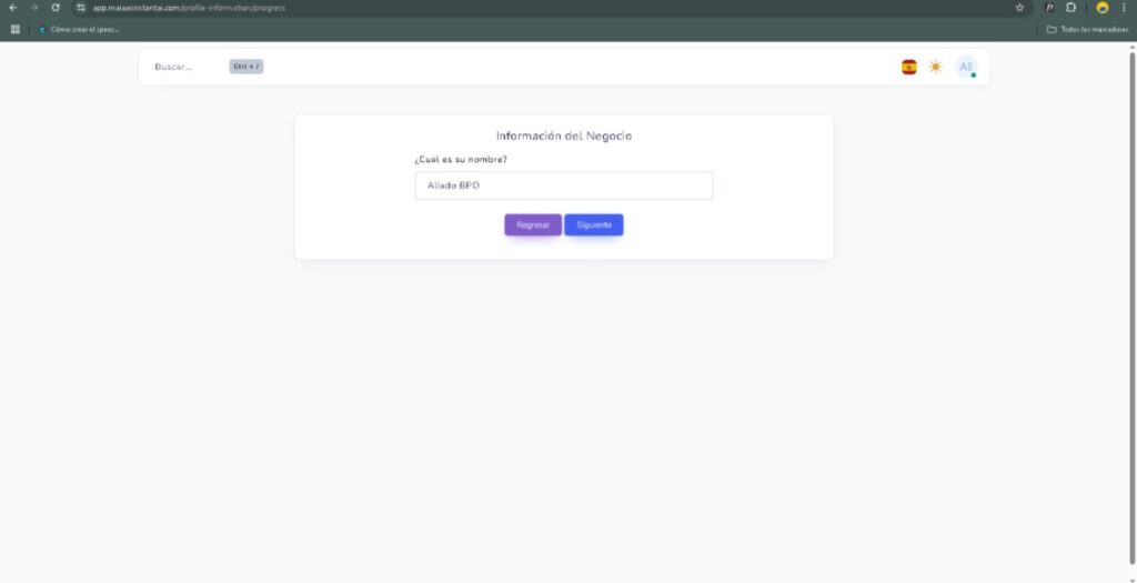 Este flujo de bienvenida ayuda a configurar el perfil del negocio que luego será utilizado por los asistentes predeterminados.